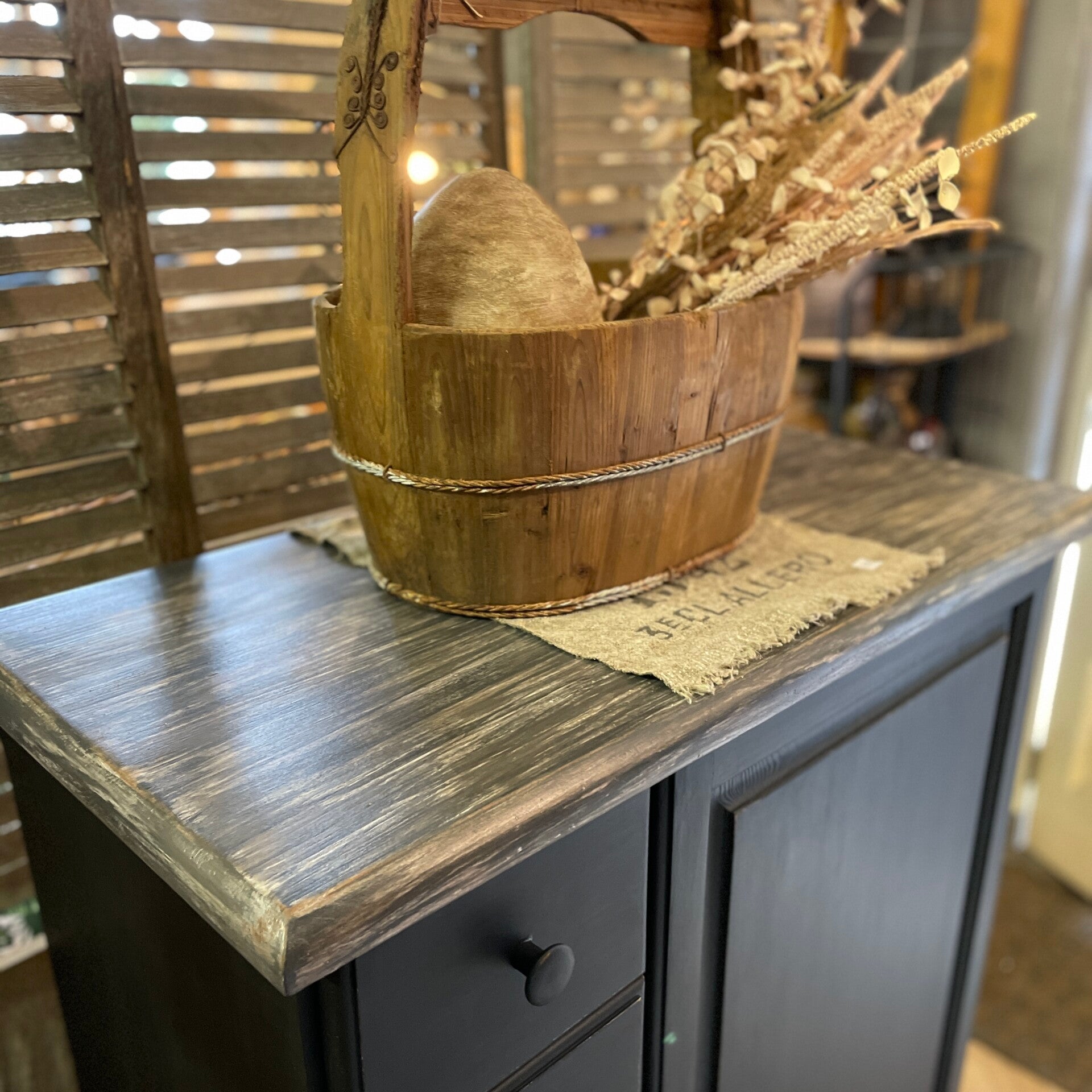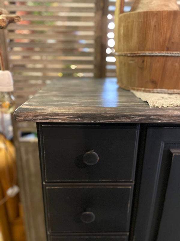 Het bovenblad is gemeleerd, oude look.