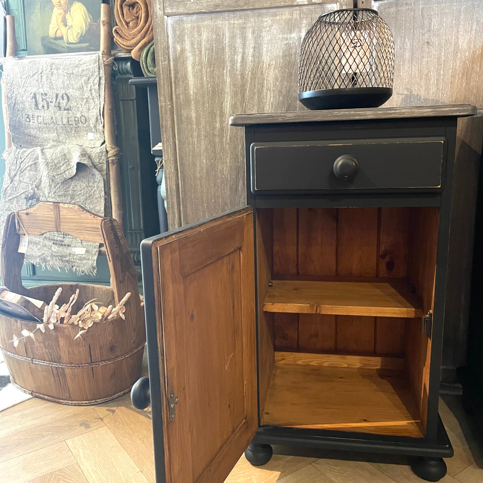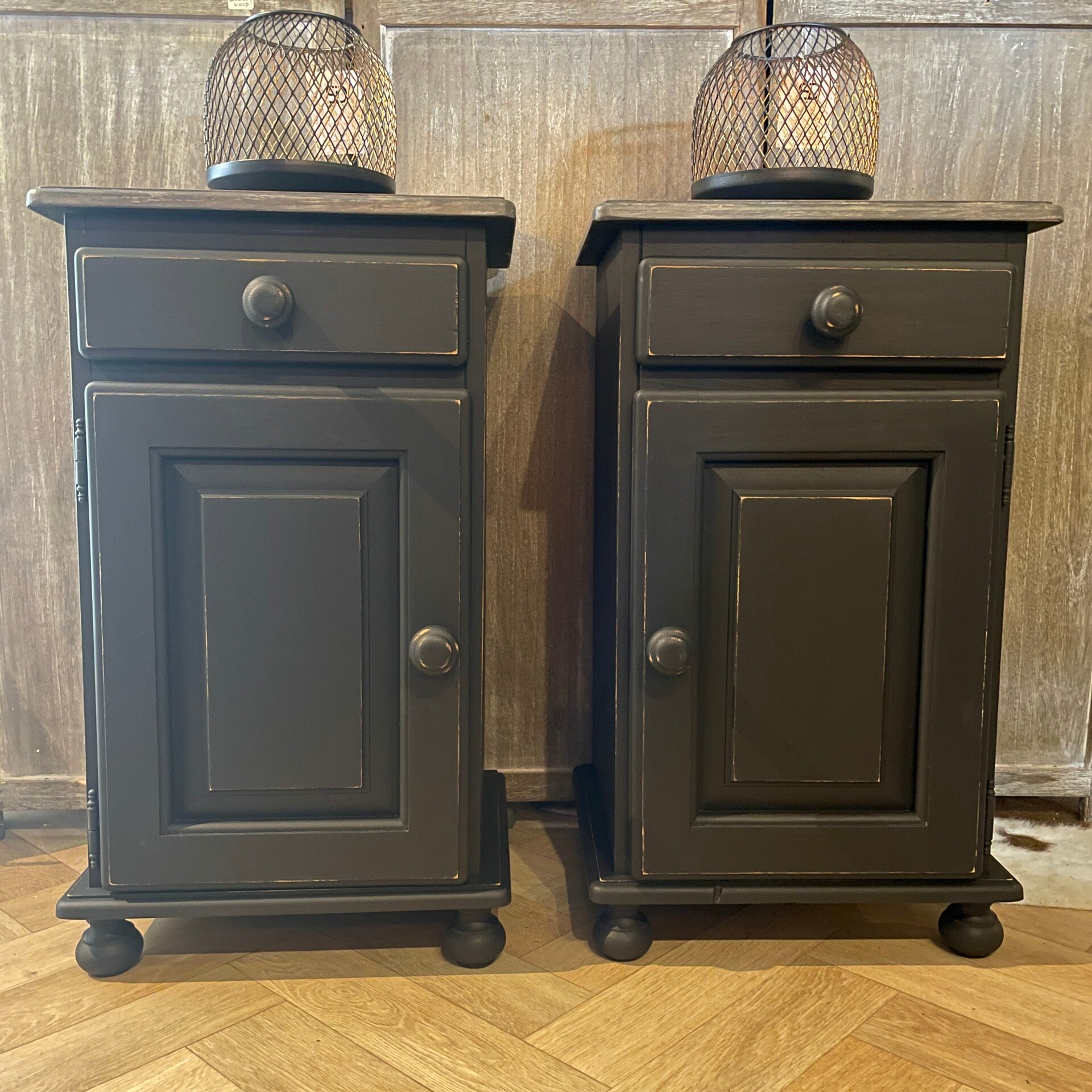 Nachtkasten set offblack, het bovenblad is oldlook gemeleerd brown.