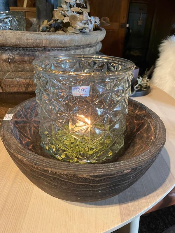 Windlicht helder glas met relief !