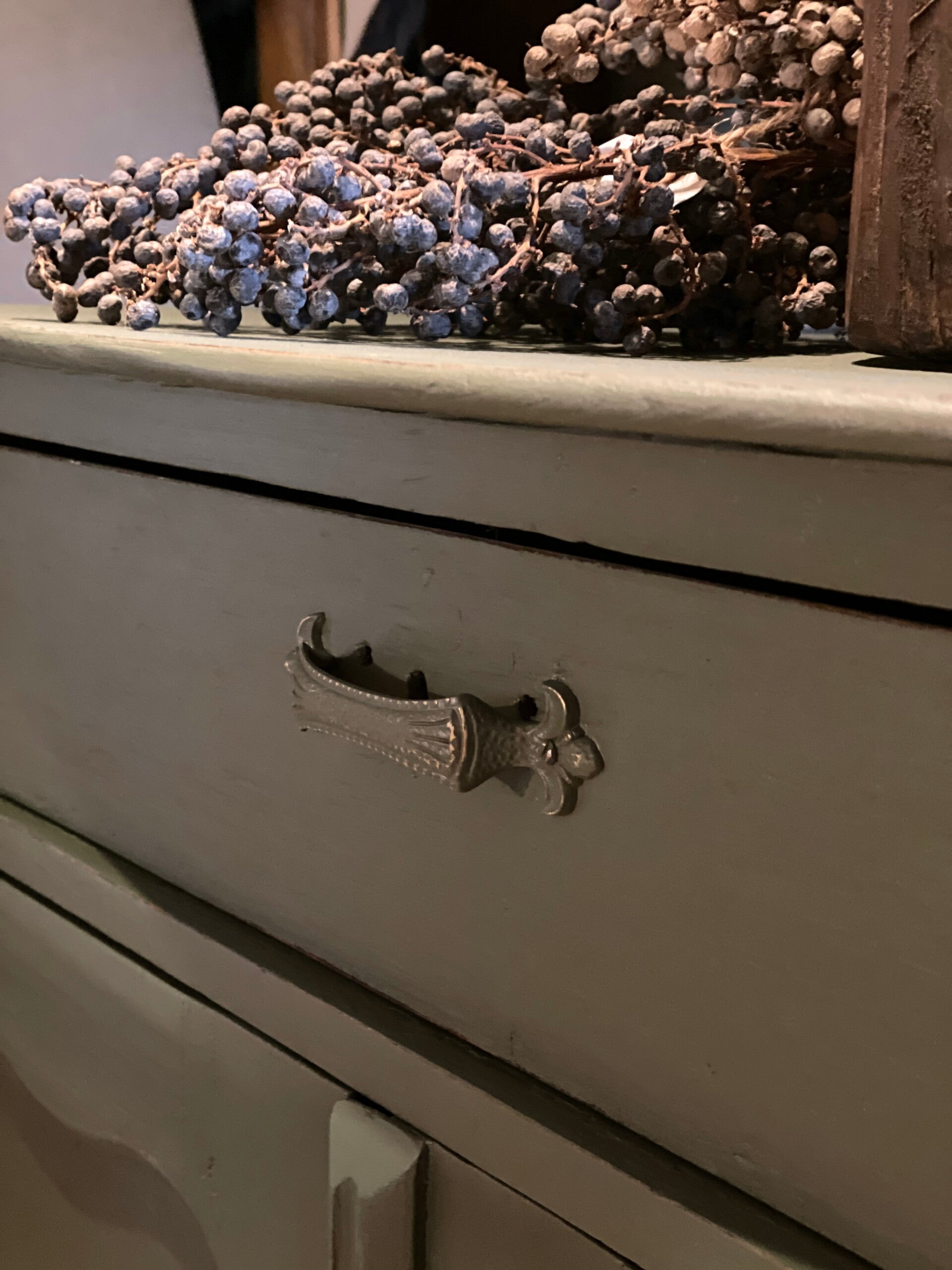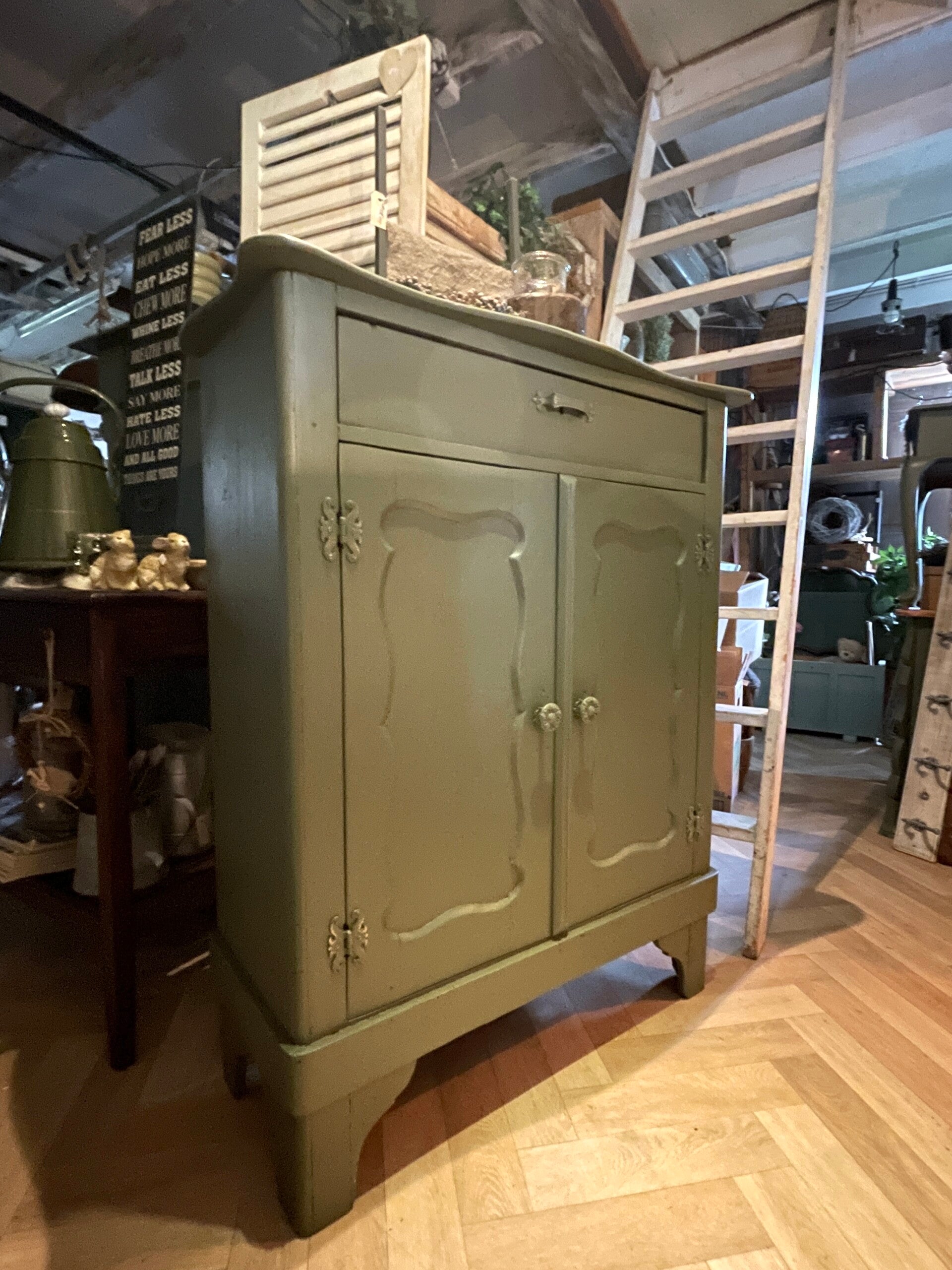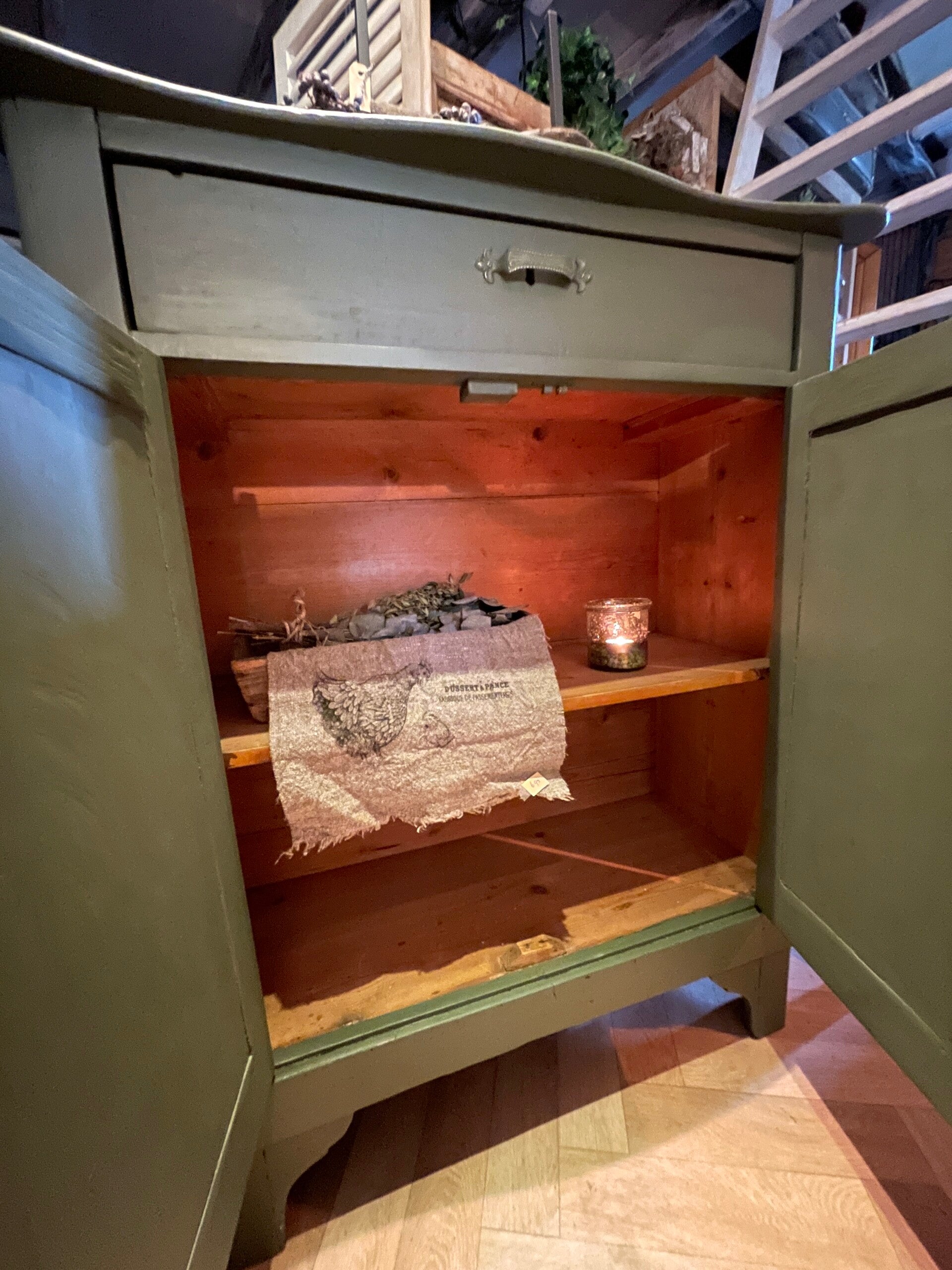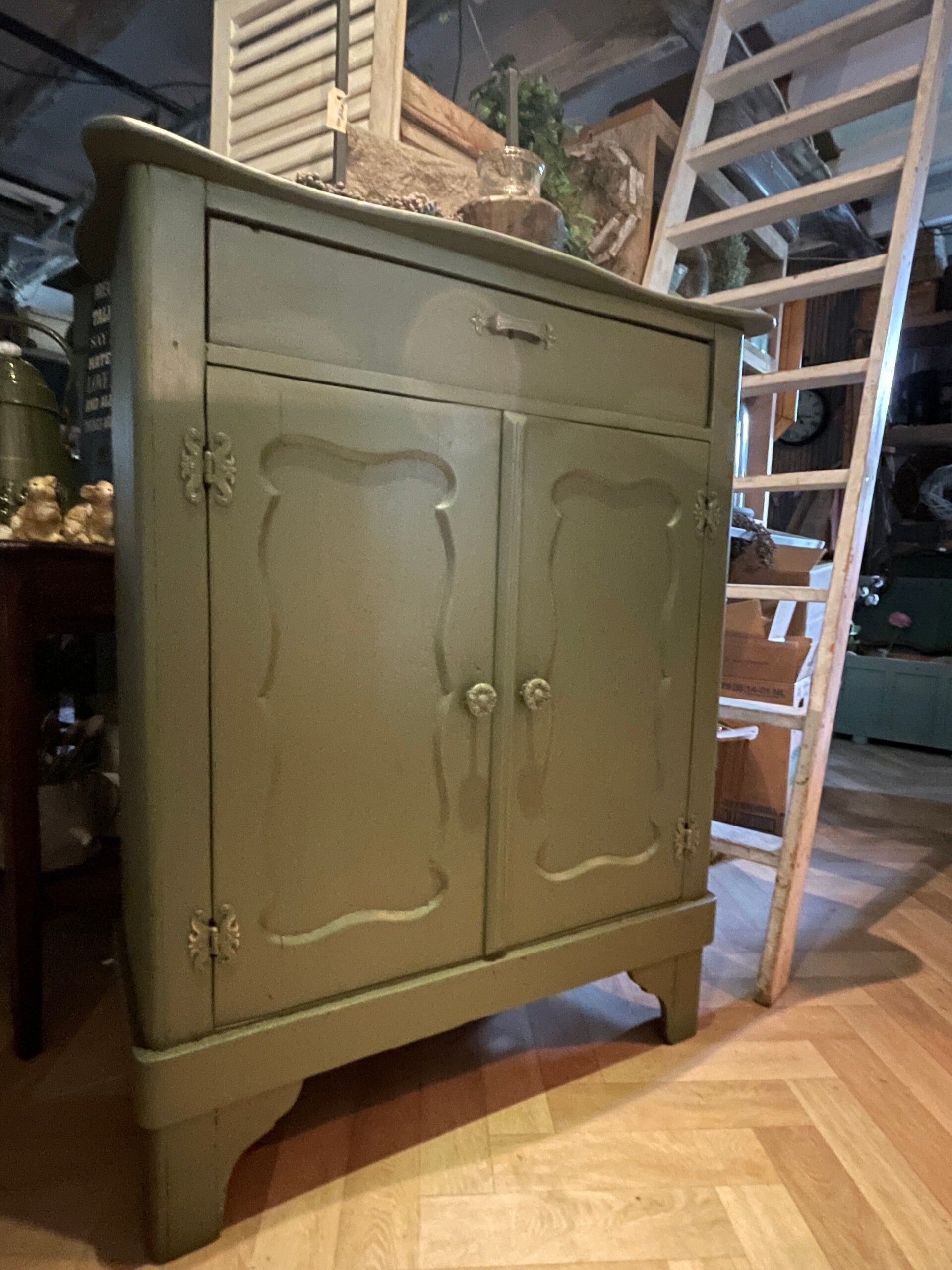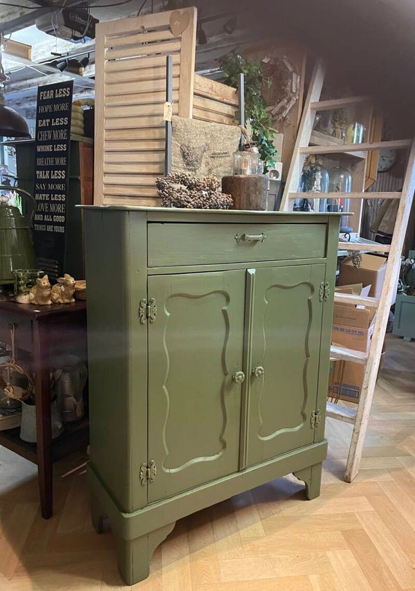 Prachtig olivegreen Biedermeier meidenkast