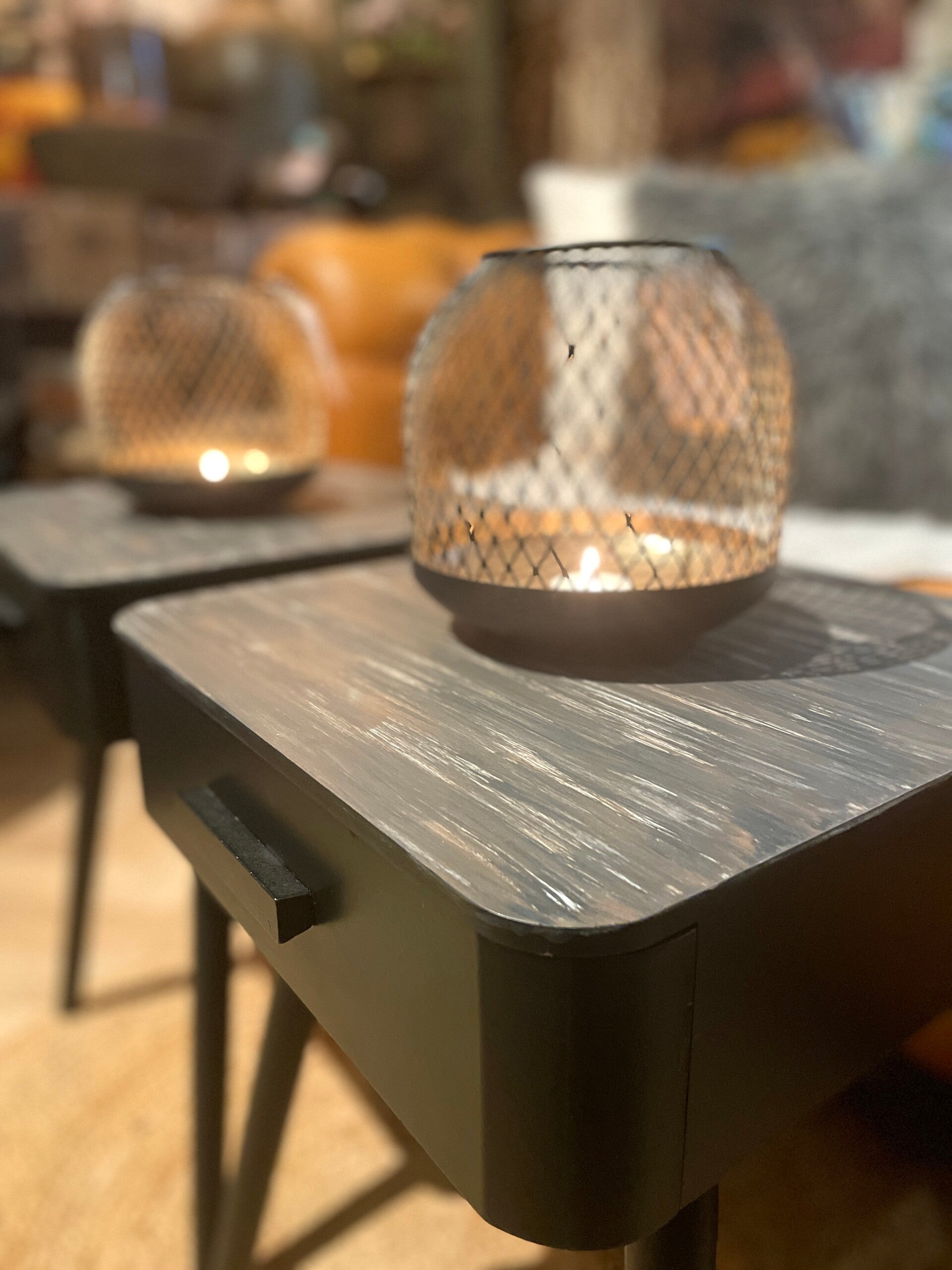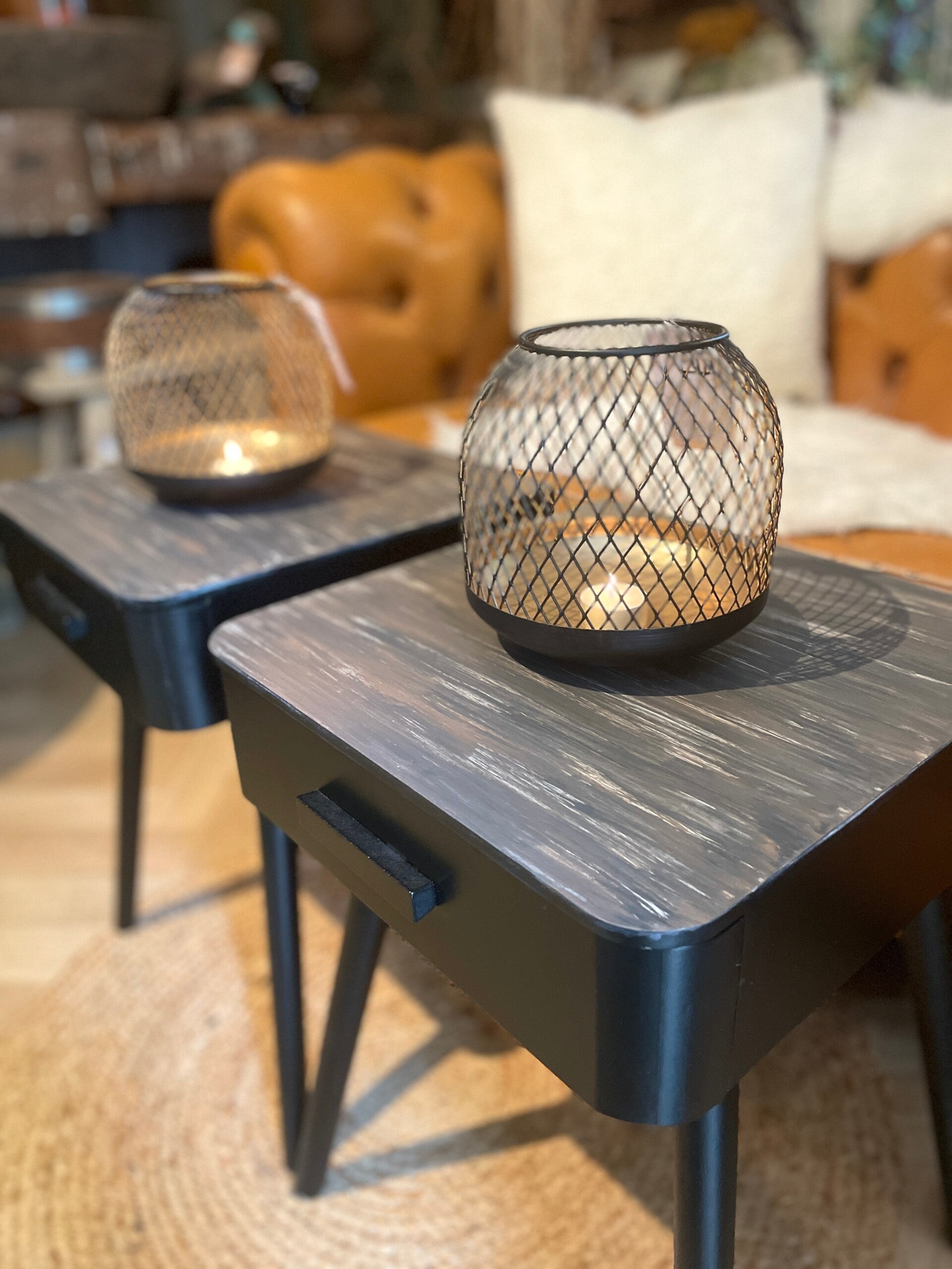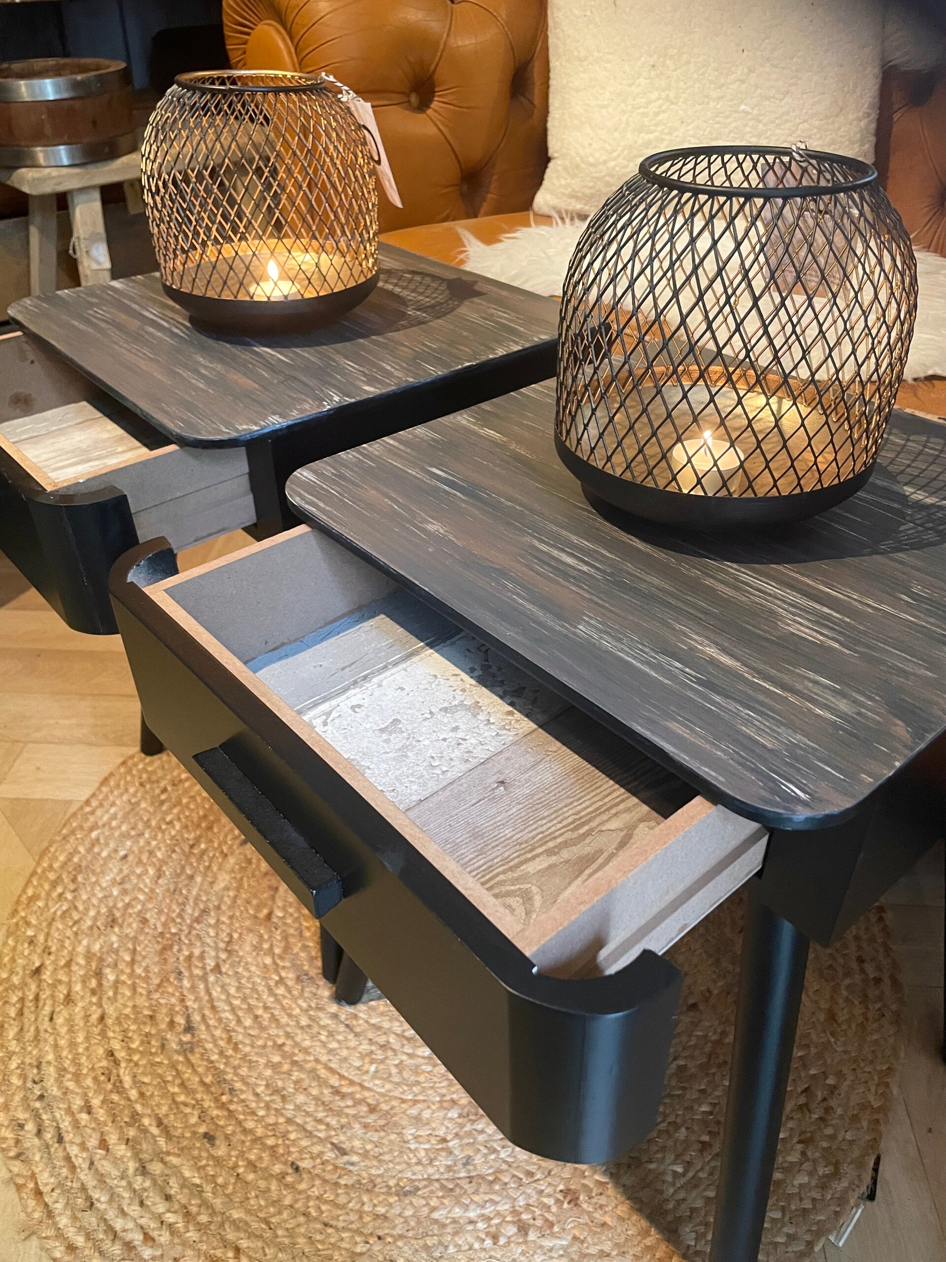 Met een oldbrown gemeleerd bovenblad en een laadje.