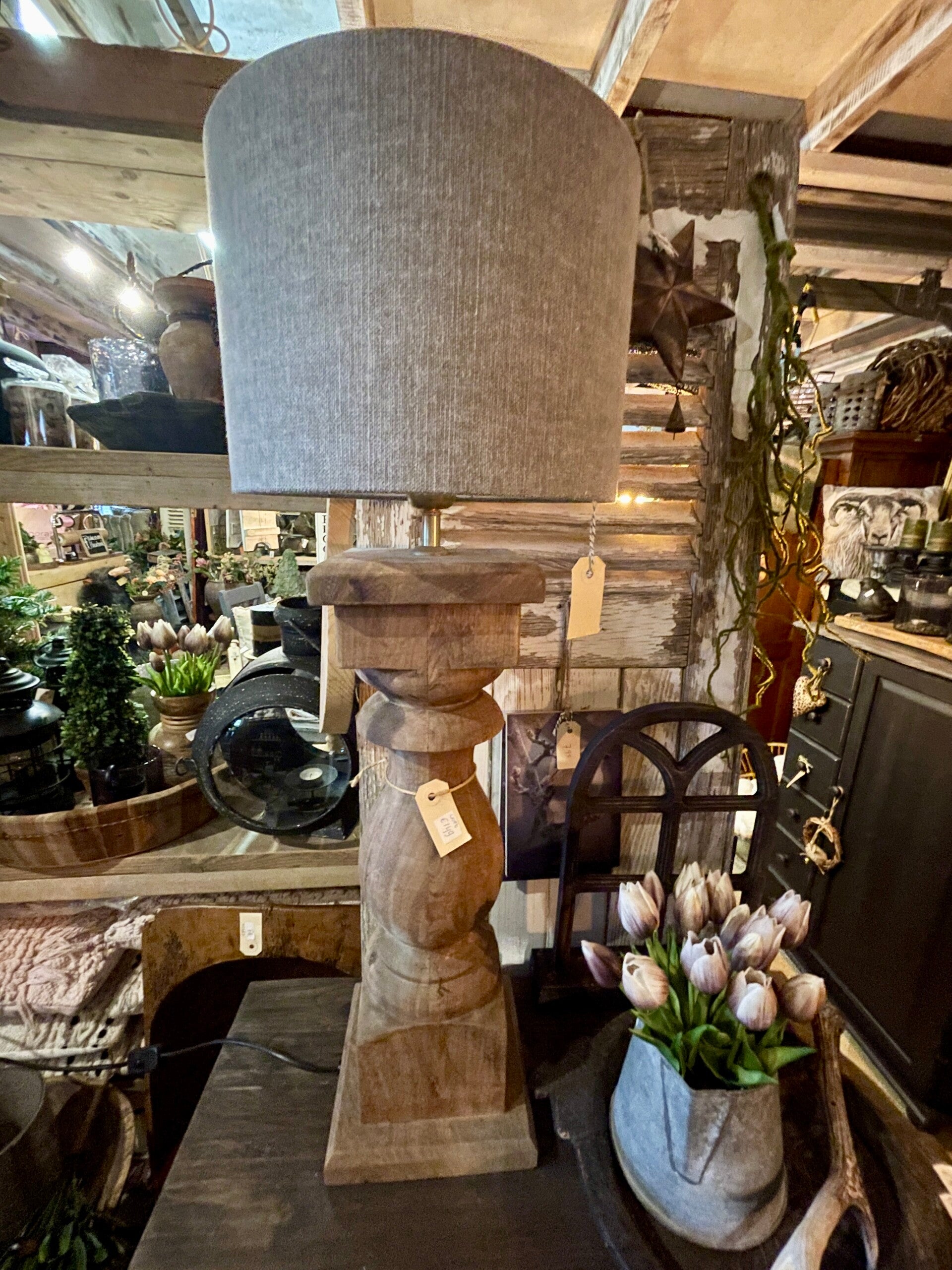 Houten baluster lampvoet 19x19xH64 cm, hout weather barn.