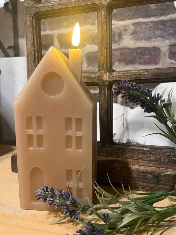 LED kaars huisje (taupe)