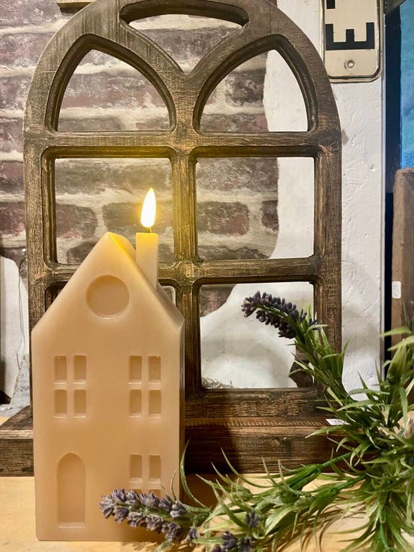 Led kaars in huisjes vorm.