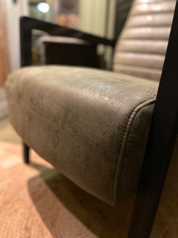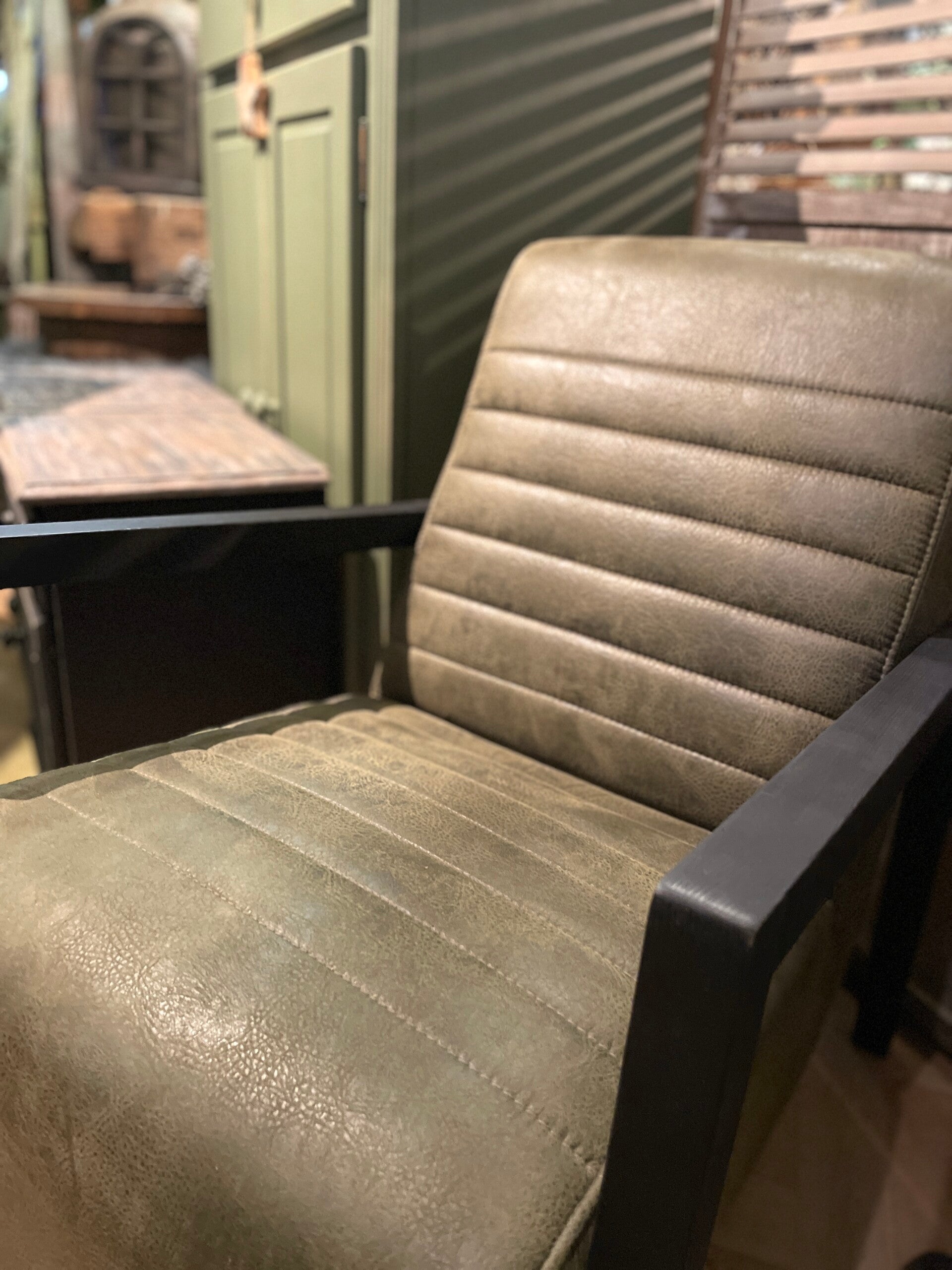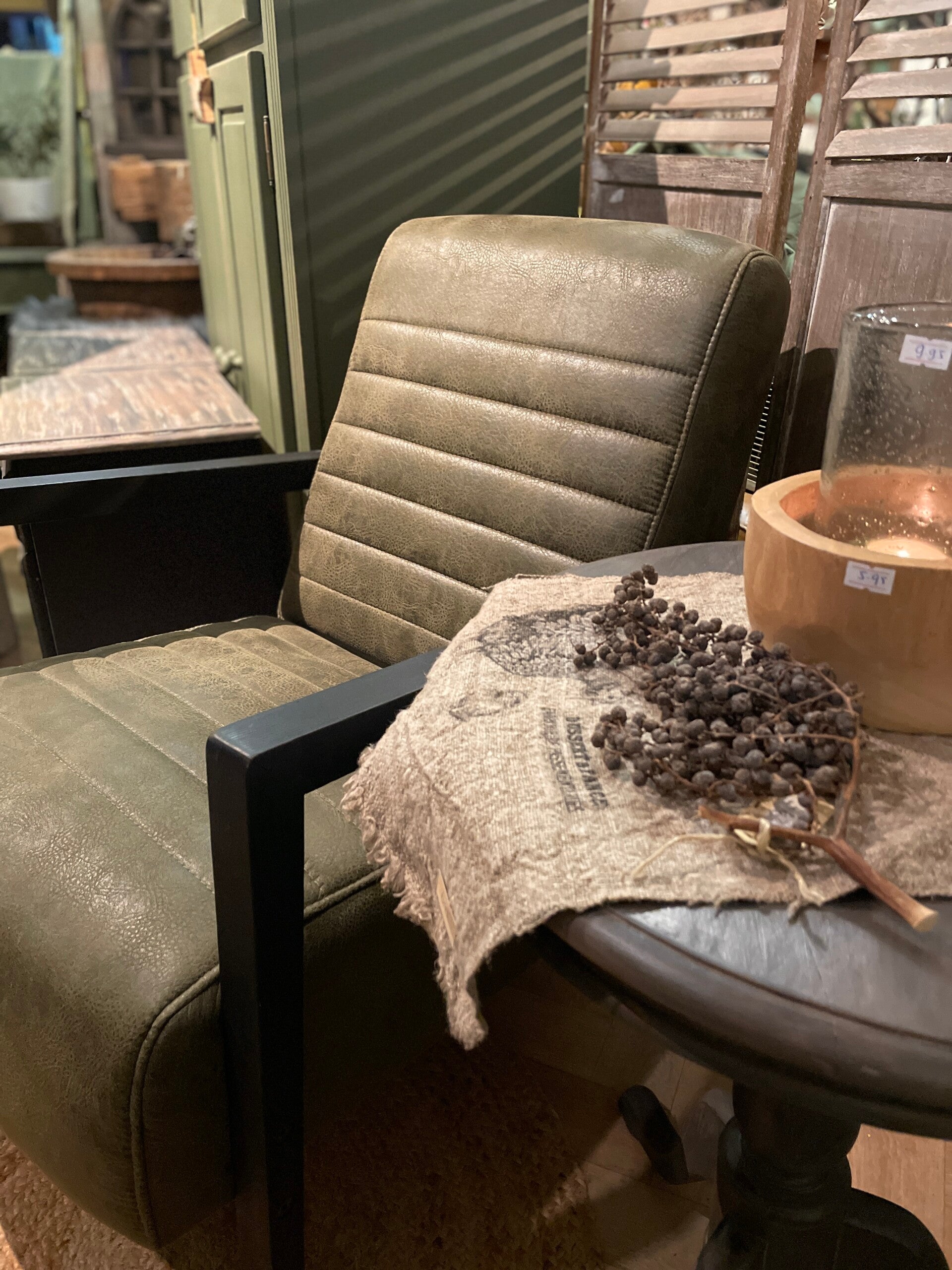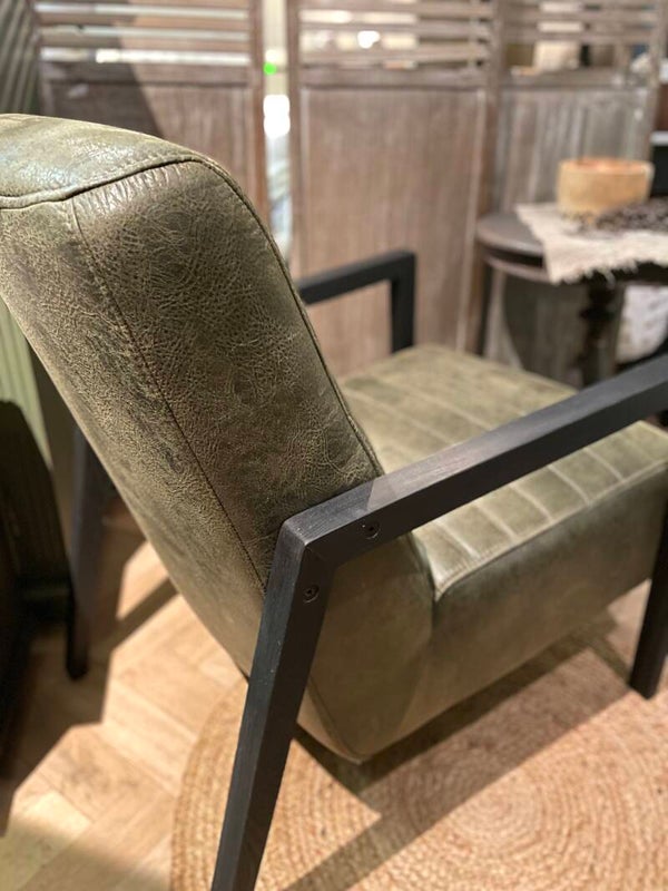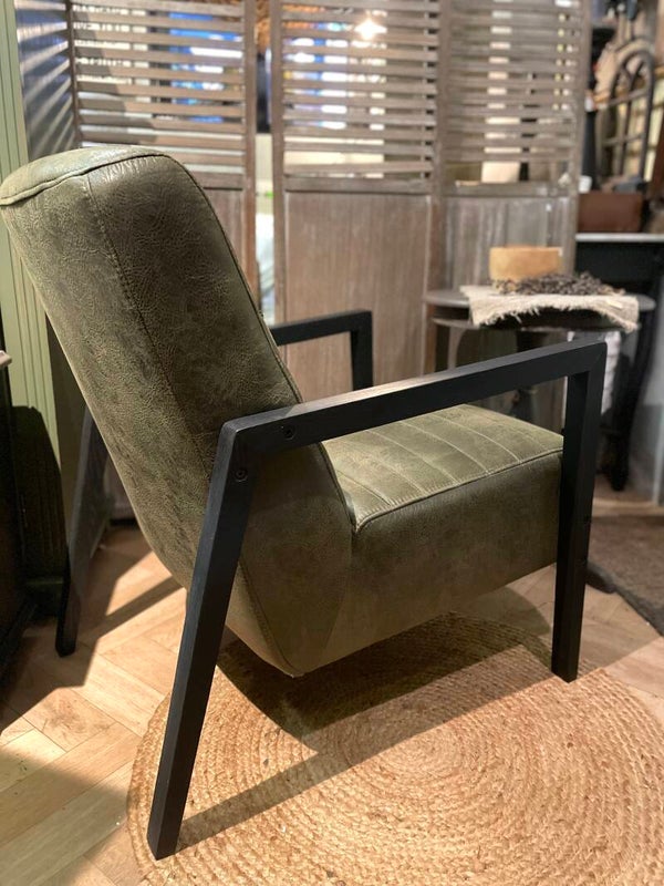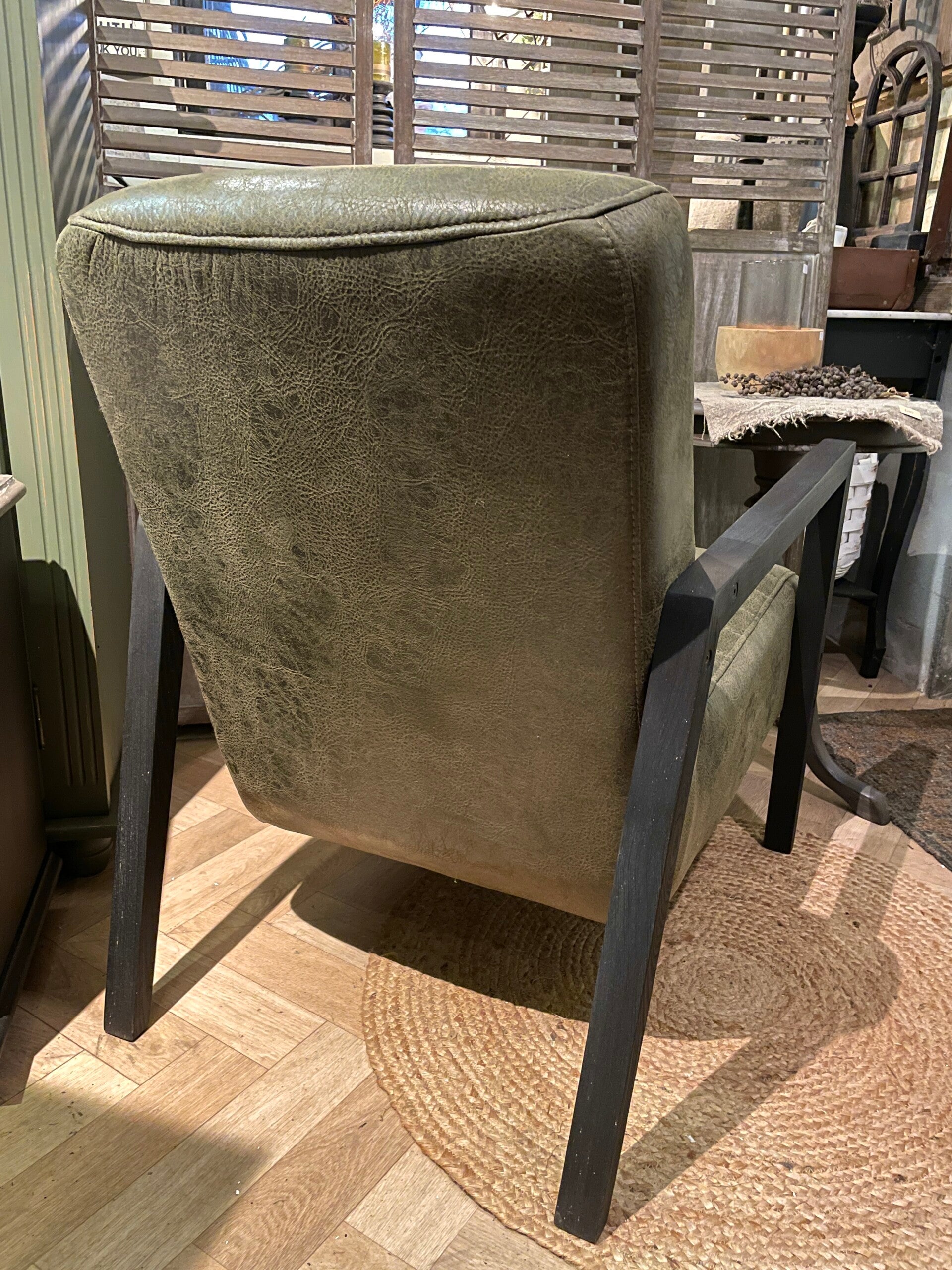 Stoere fauteuil olijfgroen *VERKOCHT*