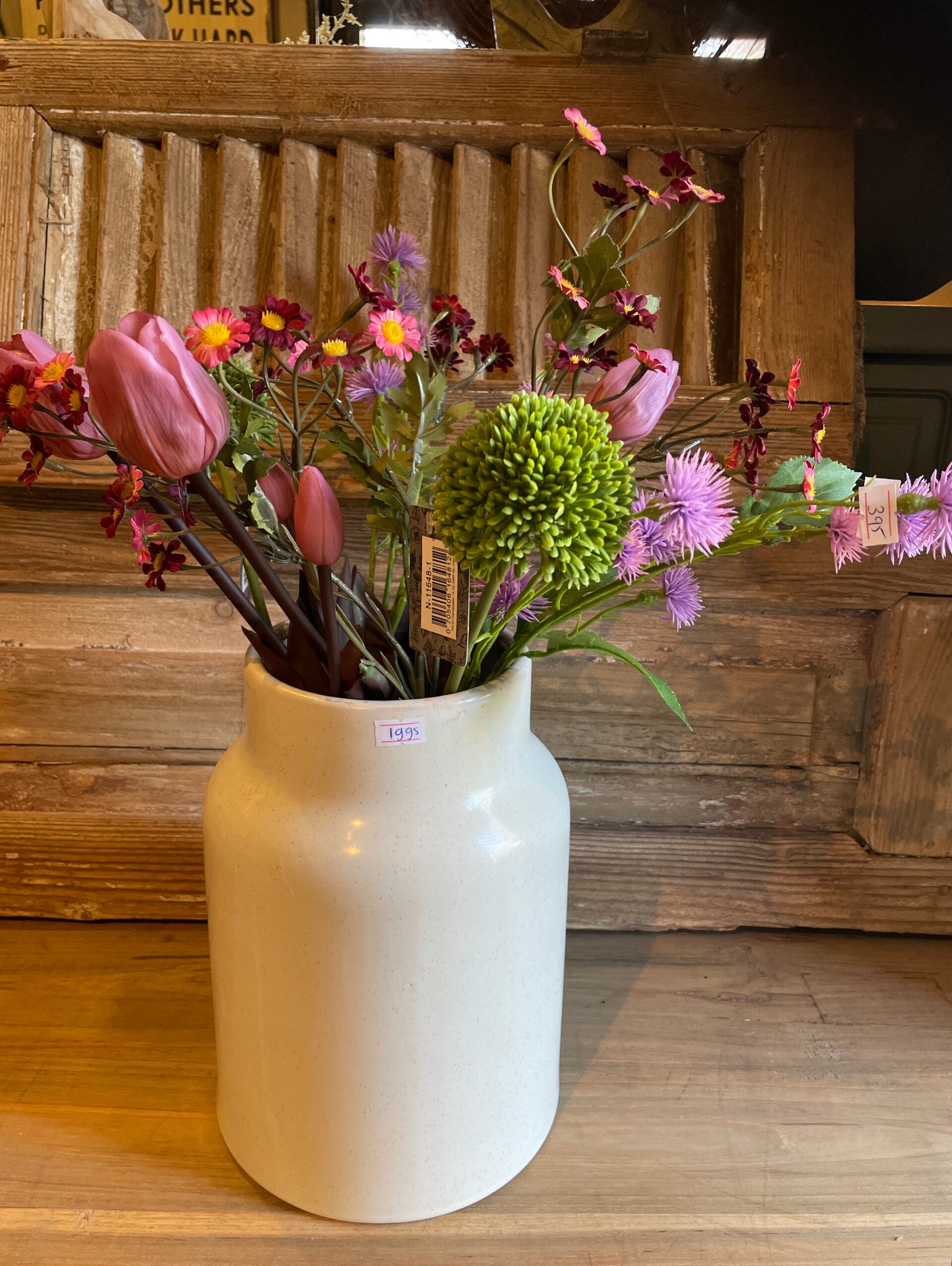 Mooie pot/vaas, gebroken witte kleur, leuk met kunstbloemen er in.