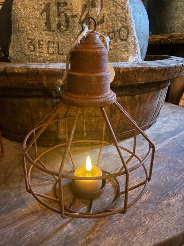 Sfeervolle hanglantaarn, (kan ook staan) roestkleur excl. wax.lichtje.