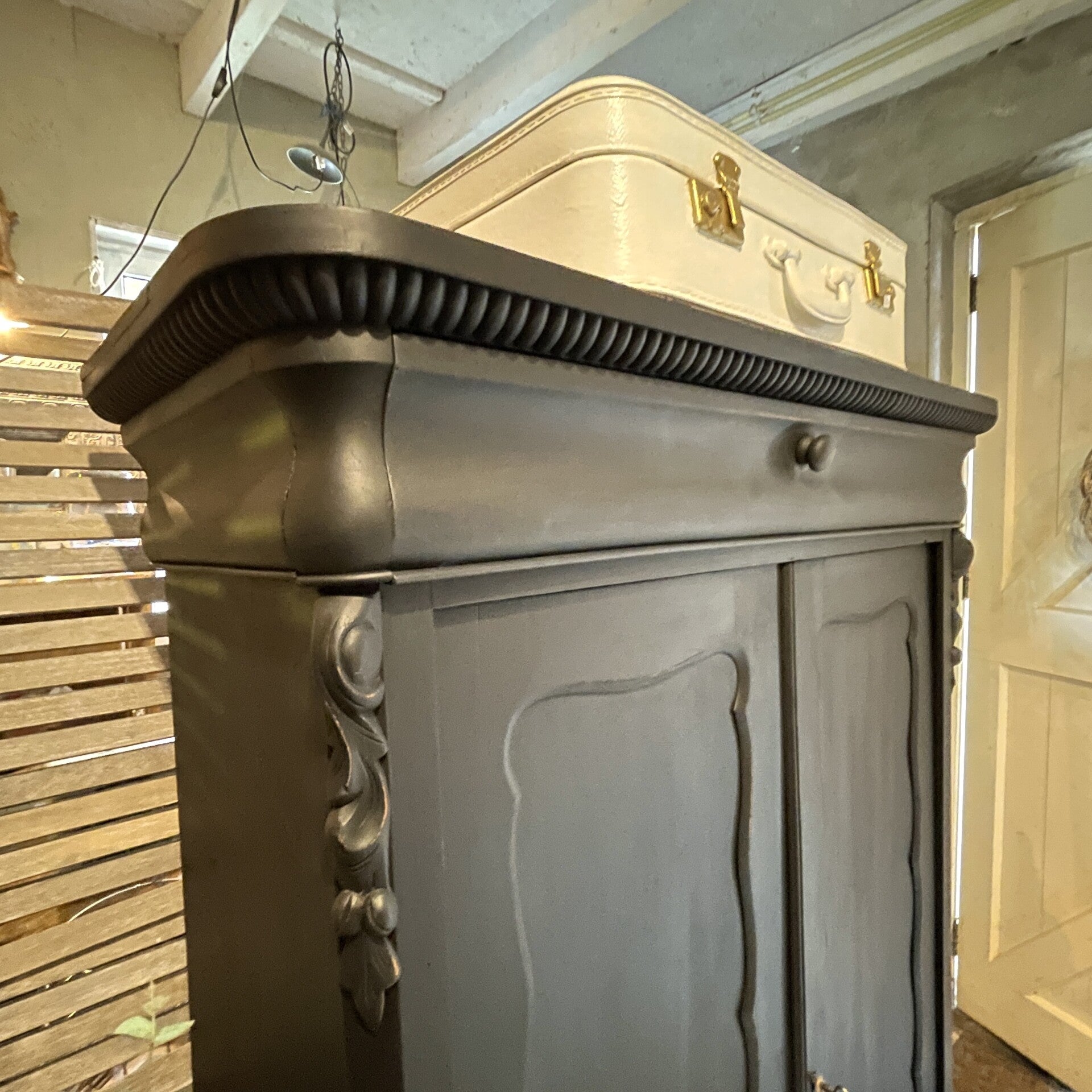 Met legplanken, ruime lade bovenin, 2 laadjes binnen in de kast en een goedwerkend slot+sleutel!