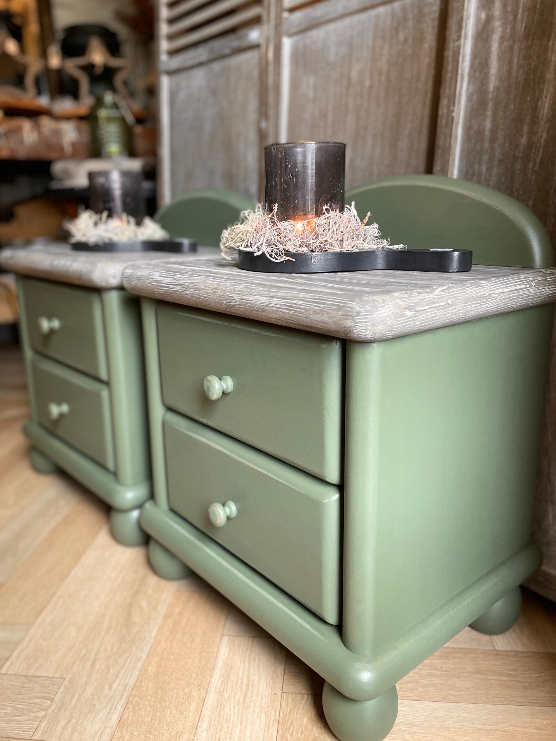 Set nachtkasten olijfgroen.