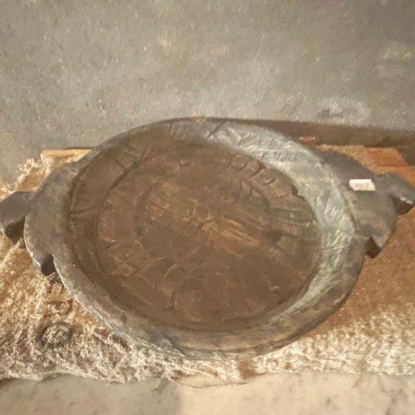 Prachtige houten chapati schaal (1) doorsnede 40 cmgemeten incl.2 handvaten